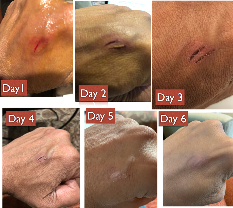 Applying METASOMER topical gel to a wound or scratch prompts the body to